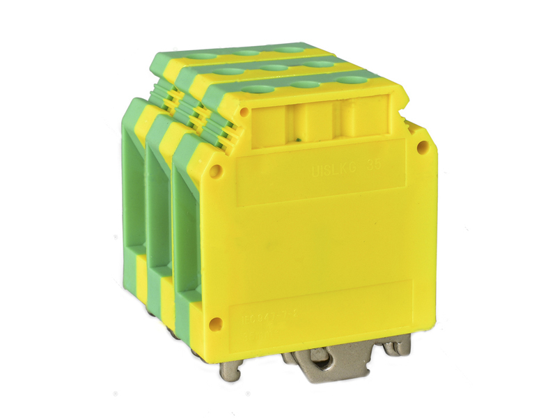 USLKG35黃綠接地端子,接線方式: 螺釘連接,連接量: 2,橫截面:0.75 mm?-50 mm?, AWG: 18-1/0,寬度: 15.2 mm,顏色: 黃綠相間,安裝方式: NS 3517.5,NS 35/15,NS 32,USLKG35接地端子符合IEC609477-2標準最大電流150A剛性導線接線范圍0.75-35mm柔性導線接線范圍0.75-50mm,M6螺釘,ZB10標記,ZB12也可以,中央緊固螺釘M5/2.5-3NM扭矩力,是UK接地端子中的